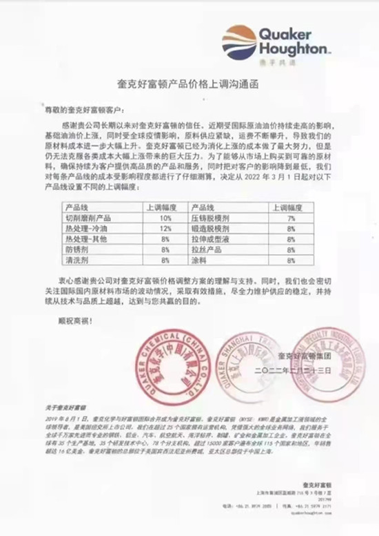 以下是元素君整理的部分潤滑油品牌的價格動態(tài)和調(diào)價函。