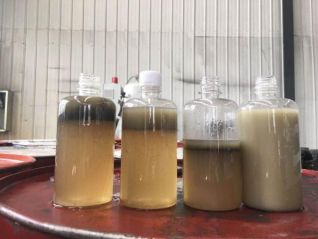 由于使用過程中處理不當,客戶送過來的油品經(jīng)過取樣后,發(fā)現(xiàn)一些桶中含水分比較多,一些桶中乳化已經(jīng)比較嚴重。
