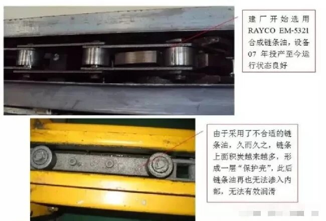 以下是良好潤滑的鏈條與潤滑不良鏈條對比: