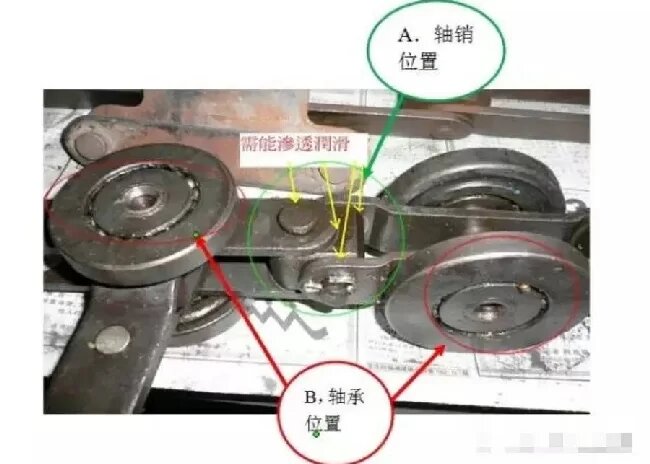 鏈條的潤滑關(guān)鍵點為鏈轂與鏈軸之間,這也是最易發(fā)生磨損的部位,它會導(dǎo)致鏈條拉長;根據(jù)鏈條制造商的規(guī)定,當(dāng)鏈節(jié)的拆除長度超過總長的5%時鏈條報廢;無正確潤滑的鏈條壽命不超5年,潤滑良好的鏈條可工作15~20年。